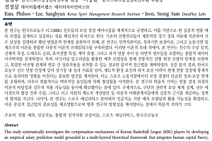 본 연구는 한국프로농구 리그(KBL) 선수들의 보상 결정 메커니즘을 체계적으로 규명하고, 이를 기반으로 한 실증적 연봉 예 측 모델을 설계하고 실증하는 것을 핵심적인 목적으로 한다. 기존의 선행연구들이 제한적인 경기 성과 지표에 의존하여 선 수 보상을 설명하려 했던 방법론적 한계를 보완하기 위해, 본 연구는 인적자본이론, 성과기반 보상이론, 그리고 노동시장…