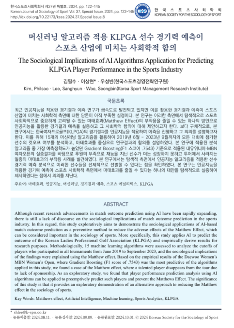 주요어: 마태효과, 인공지능, 머신러닝, 경기결과 예측, 스포츠 애널리틱스, KLPGA