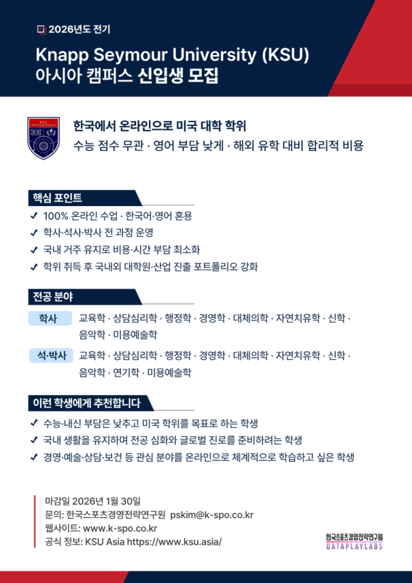 냅시모어대학교 아시아 캠퍼스는 정규 학위과정을 운영하며, 경영학과 스포츠 분야를 포괄하는 스포츠데이터분석 전공 교육을 제공한다. KBS스포츠예술과학원은 학점은행제를 통해 보다 유연한 학습 경로를 원하는 학생들에게 교육 기회를 제공한다. 이번 협력에서 한국스포츠경영전략연구원은 교육과정 홍보, 과정 안내, 진학 및 진로 상담, 지원 절차 안내 등을 담당한다. 더 많은 학생들이 교육 기회를 인지하고 실제 수강까지 이어질 수 있도록 지원하는 역할이다. 한국스포츠경영전략연구원은 스포츠 분야의 AI 빅데이터 전문 연구기관으로, 스포츠 인공지능 모델 개발과 더불어 프로스포츠 리그 데이터 분석, 경기예측모델 개발 및 공공·민간 컨설팅 등 다수의 연구와 프로젝트를 수행하며 성과를 축적해왔다. 이러한 연구 경험과 현장 기반의 전문성을 바탕으로 교육과정을 희망하는 학생들에게 산업 수요와 연계된 현실적인 진로 정보와 교육 방향을 제시할 수 있다는 점에서 후학 양성에 의미 있는 기여를 할 것으로 기대된다.