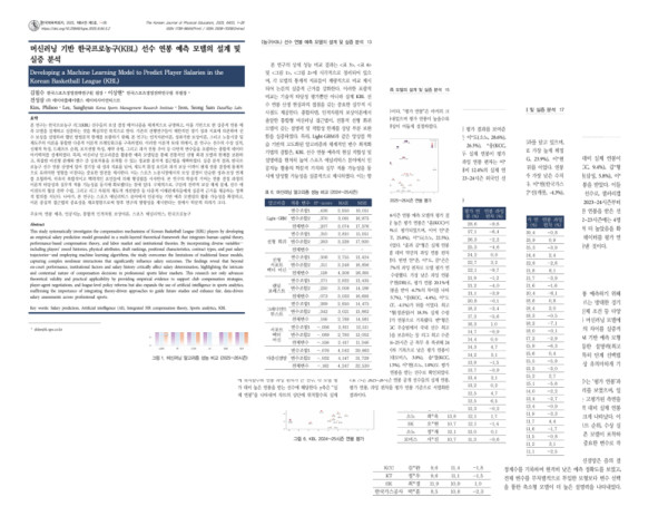 한국스포츠경영전략연구원(원장 김필수)이 한국체육학회지 제64권 제5호에 '머신러닝 기반 한국프로농구(KBL) 선수 연봉 예측 모델의 설계 및 실증 분석' 논문을 게재했다고 13일 밝혔다.